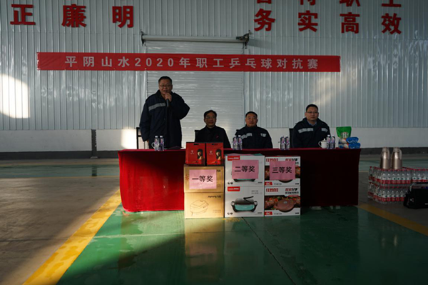 1125日,由平陰山水水泥有限公司主辦的平陰山水2020年職工乒乓球對(duì)抗賽在平陰山水塑編公司辦公區(qū)舉行。來自平陰山水公司、骨料車間、三線項(xiàng)目部等部門及兗州中材建設(shè)有限公司平陰分公司,共計(jì)30參賽隊(duì)員參與了本次賽事。平陰山水水泥有限公司侯書記等出席了開幕式,并致宣布比賽開始。