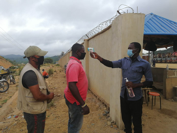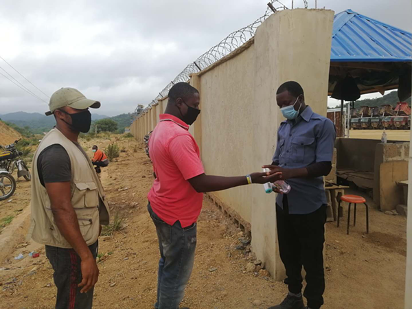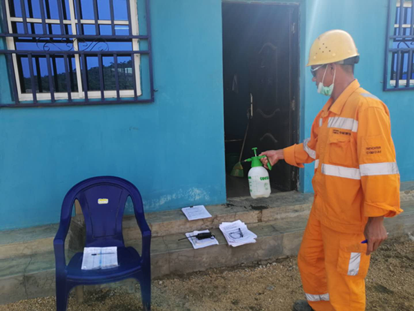自新型冠狀病毒肺炎疫情發(fā)生以來(lái),尼日利亞項(xiàng)目部領(lǐng)導(dǎo)按照公司統(tǒng)一安排,高度重視疫情防控工作,加強(qiáng)領(lǐng)導(dǎo),根據(jù)當(dāng)?shù)匾咔樾蝿?shì),把責(zé)任抗在肩上,抓在手中,采取有力措施,確保疫情防控和生產(chǎn)工作順利進(jìn)行。堅(jiān)持每天督查安全,督促生產(chǎn);實(shí)時(shí)通報(bào)國(guó)內(nèi)疫情防控情況,及時(shí)了解尼日利亞的疫情動(dòng)態(tài),加強(qiáng)疫情防范措施的宣傳,堅(jiān)持涉外無(wú)小事原則,積極傳播正能量。同時(shí),密切關(guān)注職工思想動(dòng)態(tài),解決職工實(shí)際困難,穩(wěn)定隊(duì)伍保證生產(chǎn);項(xiàng)目部想盡各種方法聯(lián)系購(gòu)買(mǎi)渠道購(gòu)買(mǎi)防護(hù)口罩、消毒液、免洗手消毒液醫(yī)用酒精等,對(duì)宿舍,辦公室,工作場(chǎng)所等進(jìn)行定期消毒。食堂增加每日的肉品供應(yīng)量,增強(qiáng)職工的免疫力。營(yíng)地大門(mén)口實(shí)行封閉式管理。多項(xiàng)舉措做好疫情防控和隊(duì)伍穩(wěn)定工作;同時(shí)項(xiàng)目部制定和完善各項(xiàng)應(yīng)急預(yù)案,根據(jù)疫情的發(fā)展情況,適時(shí)啟動(dòng)應(yīng)急預(yù)案,做出相關(guān)決策。 主要措施: 1、項(xiàng)目部對(duì)外部進(jìn)場(chǎng)人員實(shí)行嚴(yán)格準(zhǔn)入制度,對(duì)符合疫情防控要求的人員準(zhǔn)予進(jìn)入工地。 2、對(duì)工地內(nèi)工作人員(包括當(dāng)?shù)貑T工),建立健康監(jiān)測(cè)制度,每天兩次對(duì)全部人員進(jìn)行體溫測(cè)量和登記,發(fā)現(xiàn)發(fā)熱特別是伴有咳嗽、咽喉腫痛等狀況身體異常人員,立即采取隔離、送醫(yī)等應(yīng)急處置措施。  當(dāng)?shù)貑T工進(jìn)場(chǎng)前體溫檢測(cè)  當(dāng)?shù)貑T工洗手液消毒 3、做好宣傳教育工作,派發(fā)資料及宣傳疫情防控知識(shí),加強(qiáng)個(gè)人衛(wèi)生教育。  新冠疫情知識(shí)宣傳教育   4、對(duì)配送材料、物資等外來(lái)人員,不得車輛進(jìn)場(chǎng)后,車上人員出駕駛室,貨物、物資有項(xiàng)目部安排工地內(nèi)人員接受和裝卸,并做好安全防護(hù)措施。  對(duì)外來(lái)材料及車輛消殺 5、做好防范措施,車間、礦區(qū)配備測(cè)溫槍、消毒液、口罩等應(yīng)急防范物品,保持宿舍空氣流通,落實(shí)衛(wèi)生消毒制度,切實(shí)做好施工現(xiàn)場(chǎng)衛(wèi)生管理、個(gè)人衛(wèi)生防護(hù),及時(shí)開(kāi)展的病媒生物防治與消殺,有效降低病媒生物密度。  接送員工上下班車輛消毒  對(duì)考勤等記錄消毒  對(duì)現(xiàn)場(chǎng)工棚消殺 防疫物資儲(chǔ)備  生活物資儲(chǔ)備 6、安排專人實(shí)施24小時(shí)值班和項(xiàng)目部領(lǐng)導(dǎo)帶班,并保持通信通暢。 7、實(shí)行日?qǐng)?bào)告和零報(bào)告制度,做到早發(fā)現(xiàn)、早報(bào)告、早隔離、早治療,分層隔離,及時(shí)落實(shí)。 |