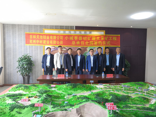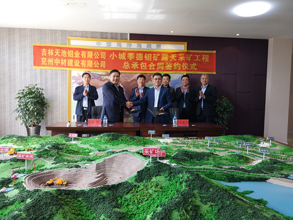 2019年5月28日8時58分,吉林舒蘭小城季德鉬礦露天采礦工程總承包合同簽約儀式在吉林天池鉬業(yè)有限公司舉行。參加簽約儀式的還有舒蘭市副市長明繼國、吉林天池鉬業(yè)和兗州中材相關(guān)負(fù)責(zé)人等。