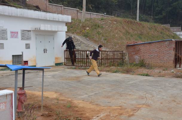 兗州中材江油國大項(xiàng)目部成功舉行 炸藥庫應(yīng)急防暴演練 寧靜的午后,兗州中材江油國大項(xiàng)目部炸藥庫值班室突然警鈴大作,監(jiān)視設(shè)備顯示一名男子手持鐵錘闖入炸藥庫。在這危急時(shí)刻,炸藥庫庫管、安保員立即向項(xiàng)目部應(yīng)急救援領(lǐng)導(dǎo)小組報(bào)警,同時(shí)撥打110報(bào)警電話,并進(jìn)入炸藥庫實(shí)施圍堵。 接到警報(bào),項(xiàng)目部領(lǐng)導(dǎo)立即啟動(dòng)炸藥庫應(yīng)急預(yù)案,根據(jù)“敵情”,應(yīng)急救援領(lǐng)導(dǎo)小組立即集結(jié)“護(hù)衛(wèi)隊(duì)”3名成員乘車直奔炸藥庫。護(hù)衛(wèi)隊(duì)趕至炸藥庫時(shí),離報(bào)警時(shí)間僅過去三分鐘。此時(shí)“不法分子”對(duì)堅(jiān)固的庫房雙層防盜門束手無策,庫房凄厲的警報(bào)聲也給“不法分子”帶來沉重的心理壓力,騎虎難下的“不法分子”拔出刀具,威脅庫管員立即打開雷管庫。護(hù)衛(wèi)隊(duì)員臨危不懼成功的對(duì)“不法分子”實(shí)施了抓捕。最終,被制服的“不法分子”被移交給隨后趕到的公安局民警,一場突發(fā)事件被迅速平息。
