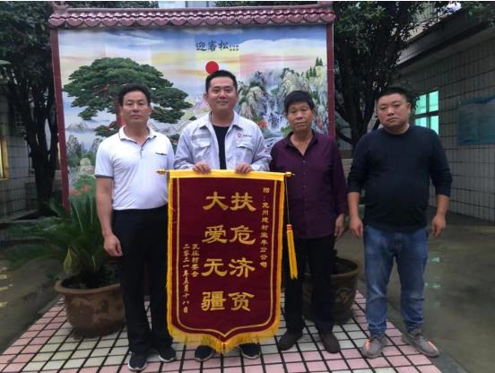 為表達(dá)寶豐分公司多年來(lái)對(duì)村莊的貢獻(xiàn)和對(duì)村民們的情誼,村委會(huì)特意送來(lái)了“大愛無(wú)疆,扶危濟(jì)貧”錦旗,以示感謝!
