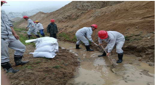 2022年6月20日早6點(diǎn),接應(yīng)急管理部門通知吉林地區(qū)預(yù)計(jì)未來(lái)24小時(shí)內(nèi)將有強(qiáng)降雨,舒蘭分公司項(xiàng)目經(jīng)理宋憲軍緊急通知各科室人員,組織對(duì)現(xiàn)場(chǎng)、生活區(qū)、炸藥庫(kù)、維修車間等地點(diǎn)進(jìn)行了防汛設(shè)施檢查。生活區(qū)東側(cè)邊坡被臨近公司時(shí)候后未進(jìn)行修整,加之連續(xù)降雨一整夜,東側(cè)邊坡垮塌,淹沒(méi)排水溝,造成堵塞。 接到通知后,生產(chǎn)科,立即調(diào)用裝載機(jī)趕到現(xiàn)場(chǎng),組織員工帶好防汛裝備趕到現(xiàn)場(chǎng)。現(xiàn)場(chǎng)負(fù)責(zé)人周浩講“裝載機(jī)立即清理邊坡上的塌陷料,生產(chǎn)科組織人員去上游疏通水道,安全科和設(shè)備科組織人員去邊坡上面挖掘水溝設(shè)置擋墻,避免水流二次破壞邊坡”,任務(wù)分配完畢后,各科室?guī)ьI(lǐng)人員緊鑼密鼓的組織起來(lái)。