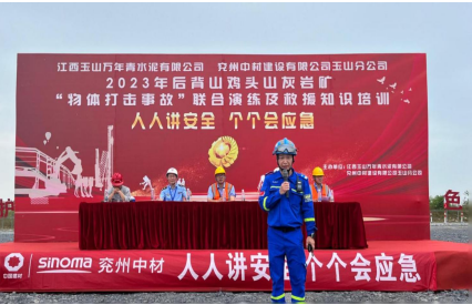 為深入宣貫黨的二十大精神和習(xí)近平總書記關(guān)于安全生產(chǎn)重要論述,進(jìn)一步樹牢“以人為本、安全發(fā)展”的安全生產(chǎn)管理理念,貫徹“安全第一、預(yù)防為主、綜合治理”的安全生產(chǎn)方針,強(qiáng)化非煤礦山事故應(yīng)急救援管理工作和應(yīng)急救援隊(duì)伍建設(shè),切實(shí)提高分公司應(yīng)對礦山突發(fā)事故的聯(lián)合應(yīng)急救援綜合能力,6月17日,兗州中材玉山分公司聯(lián)合江西玉山萬年青水泥有限公司、玉山縣藍(lán)天救援隊(duì)、玉山縣人民醫(yī)院等舉辦2023年“物體打擊事故”聯(lián)合演練及救援知識培訓(xùn)活動。玉山縣應(yīng)急管理局局長吳高峰、玉山萬年青水泥有限公司總經(jīng)理李躍華等出席本次活動并致辭。