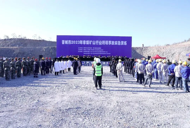 | 為進(jìn)一步提升非煤礦山企業(yè)安全意識(shí)和應(yīng)對(duì)突發(fā)事故的處置能力,晉城市 2023 年非煤礦山行業(yè)坍塌事故應(yīng)急演練在晉城山水合聚水泥有限公司司家掌石灰?guī)r礦(澤州分公司承建礦山)舉行。晉城市應(yīng)急管理局、縣應(yīng)急管理局、縣委宣傳部、縣衛(wèi)健局、縣公安局、縣氣象局、縣消防救援大隊(duì)、縣自然資源局、晉城市救援救護(hù)隊(duì)、晉城市能源技術(shù)中心等 12 家單位120余人參與演練。市應(yīng)急管理局三級(jí)調(diào)研員柳青、市應(yīng)急管理局救援協(xié)調(diào)科邰建民、各縣區(qū)應(yīng)急管理局負(fù)責(zé)人、分管負(fù)責(zé)人、非煤礦山行業(yè)相關(guān)科室負(fù)責(zé)人及全市所有非煤礦山企業(yè)主要負(fù)責(zé)人等 130 多人現(xiàn)場(chǎng)觀摩了演練。