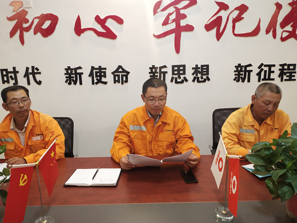 按上級黨委統(tǒng)一部署,寧陽項目部于9月23日晚召開全體員工結(jié)合中材礦山劉書記講話精神,開展“不忘初心,牢記使命”主題教育活動。 會上,劉經(jīng)理首先帶領(lǐng)全體員工認真學(xué)習(xí)《在中材礦山建設(shè)有限公司開展“不忘初心,牢記使命”主題教育部署會上的講話》。全體員工分別針對“不忘初心,牢記使命”主題教育活動展開發(fā)言討論。最后,根據(jù)《在中材礦山建設(shè)有限公司開展“不忘初心,牢記使命”主題教育部署會上的講話》會議精神,劉經(jīng)理呼吁全體員工要積極努力地向黨靠攏,今后更加緊密團結(jié)在以習(xí)近平同志為核心的黨中央周圍,高舉習(xí)近平新時代中國特色社會主義思想偉大旗幟,扎實做好“不忘初心,牢記使命”主題教育工作,為全面完成集團和股份公司下達的各項經(jīng)濟指標而努力奮斗,以優(yōu)異的成績迎接新中國成立70周年   |
