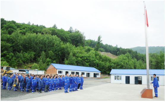 2022年7月1日, 兗州中材和龍分公司在Ⅳ號(hào)礦組辦公生活區(qū)舉行“升國(guó)旗、唱國(guó)歌”儀式,風(fēng)展紅旗如畫(huà),砥礪初心如磐。